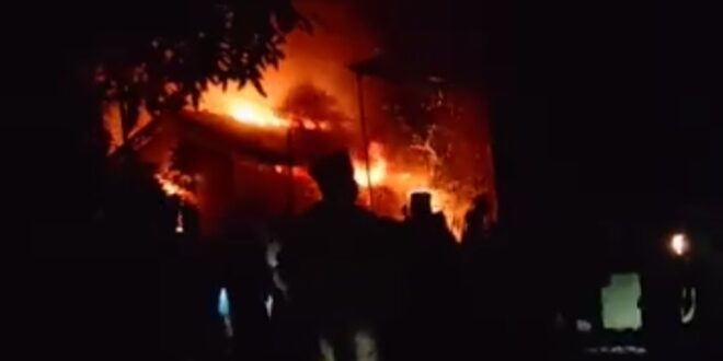 LAHAT, Gemasriwijaya – Lagi-lagi kebakaran hebat melanda di Bumi Seganti Setungguan. Kali ini satu unit rumah permanen yang terbuat dari beton milik bapak Saripudin(54) dan Ibu Marli(50) warga Desa Kebun Jati Kecamatan Kota Agung Kabupaten Lahat, Sumatera Selatan, ludes terbakar pada Senin Malam (1-3-2021) sekitar pukul 20:30 WIB. Kebakaran yang disebabkan konsleting listrik ini sontak membuat warga yang sedang melaksanakan 40 hari atas meninggalnya ibu dari bapak Bohari mantan Kades Kebun Jati.