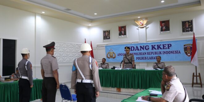 LAHAT, Gemasriwijaya.Net – Bertempat di ruan Aula Mapolres lahat, Wakapolres Lahat Kompol Feby Febriyana, S.I.K didampingi oleh Kabag Log Kompol Telaum Banua SE dan Kabag SDM AKP Sutrisman, SH melaksanakan Sidang KKEP 2 Personel Polres Lahat. Kamis (20/10).