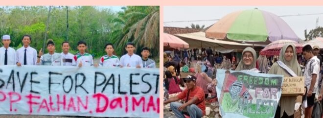 BATURAJA, Gemasriwijaya.net – Sebagai bentuk kepedulian terhadap sesama Muslim, santriwan dan santriwati Ponpes Fathan Daiman Mendala Kecamatan Peninjauan Kabupaten OKU melakukan penggalangan dana untuk Palestina, Minggu (19/11/2023).