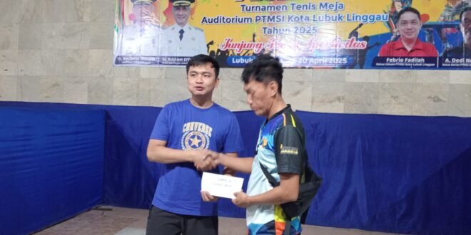 LUBUKLINGGAU-Setelah melalui tahapan pertandingan tenis meja dengan sistem gugur per divisi mulai 6,7,8 dan 9, Adi BRI meraih juara 2 kategori tunggal Putra pada perebutan Trofi Persatuan Tenis Meja Seluruh Indonesia (PTMSI) Cabang Lubuklinggau, Sabtu-Minggu (19-20/2025) di Gedung Olahraga PTMSI Lubuklinggau.
