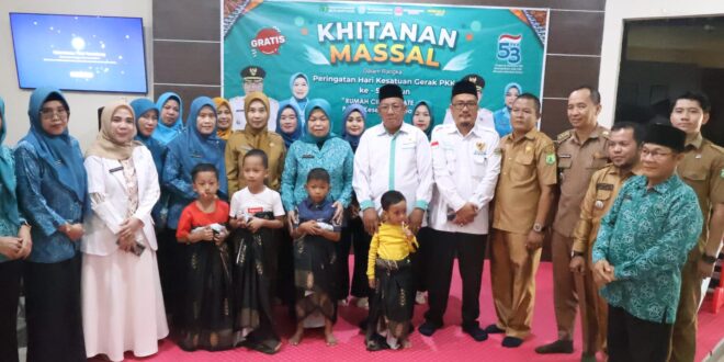 SEKAYU- LhL -Peringati Hari Kesatuan Gerak PKK Ke-53 tahun. Tim Penggerak Pemberdayaan dan Kesejahteraan Keluarga Kabupaten Musi Banyuasin (TP PKK Muba), mengadakan kegiatan Khitanan Massal, Senin (30/6/2025) bertempat di Rumah Cinta Sekate Kabupaten Musi Banyuasin.