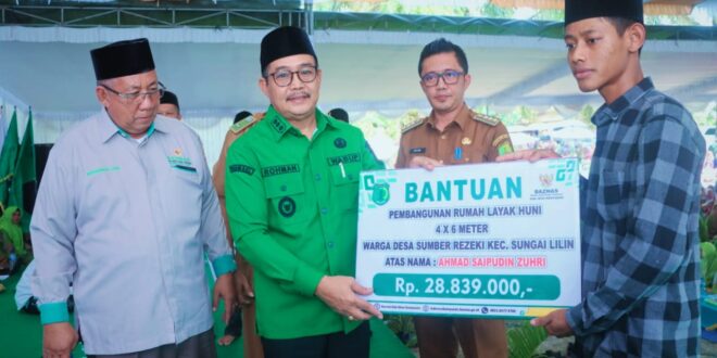 Bantuan tersebut antara lain berupa program bedah rumah bagi warga Desa Mekar Jadi atas nama Admi dan warga Desa Sumber Rejeki atas nama Ahmad Saipudin Zuhri, bantuan kursi roda, bantuan kambing ternak, bantuan pembangunan MCK, serta penyaluran Dana Desa.(Nopri)