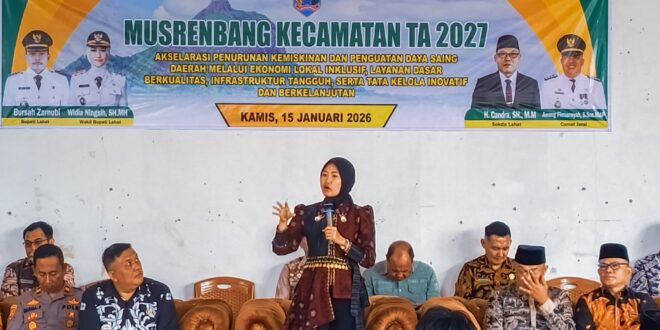 LAHAT – Bertempat di Gedung Aula Kantor Camat Jarai, Wakil Bupati Lahat Widia Ningsih, SH, MH, menghadiri kegiatan Musyawarah Rencana Pembangunan (Musrenbang) RKPD TA 2026 Tingkat Kecamatan. Kamis (15/1/26).
